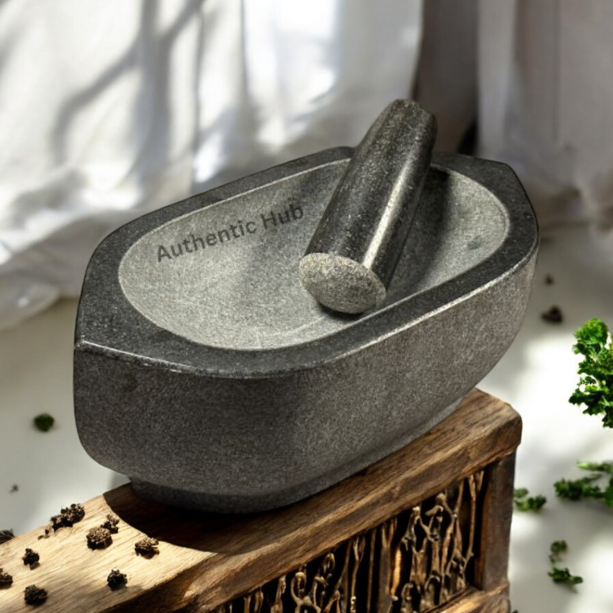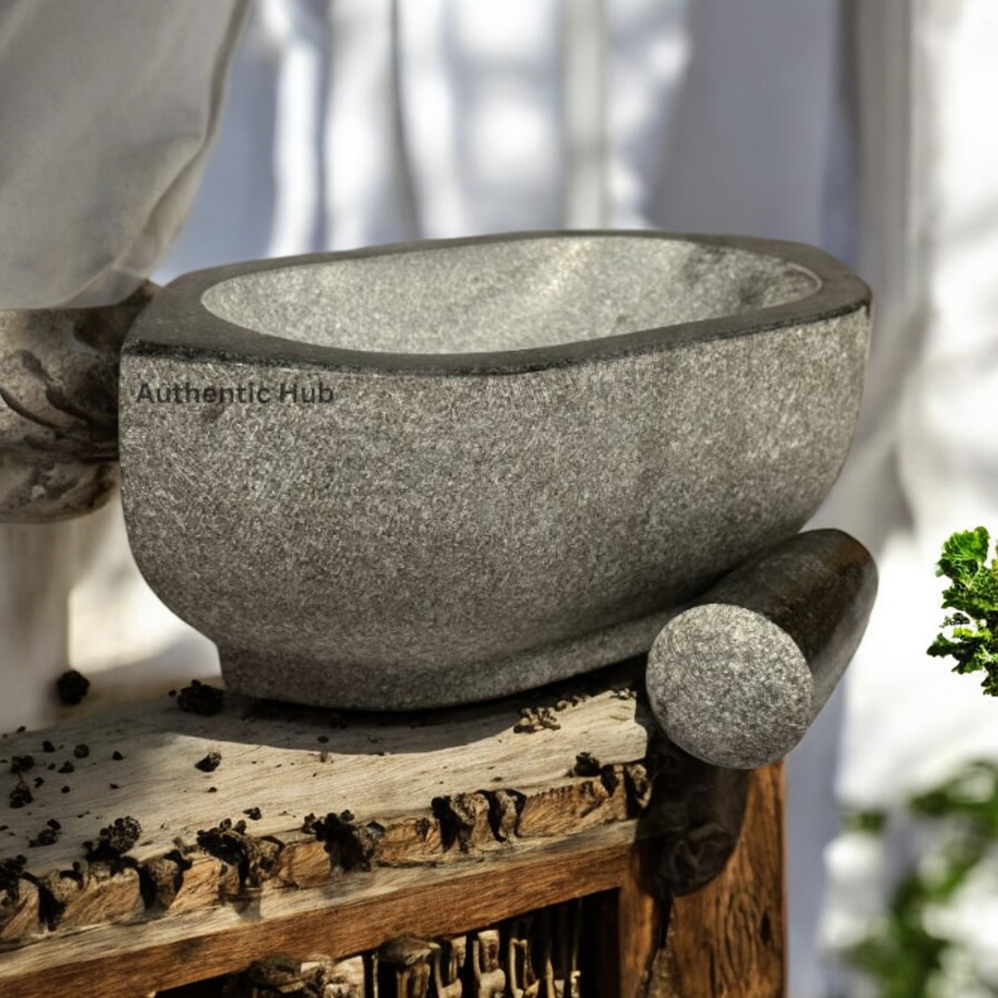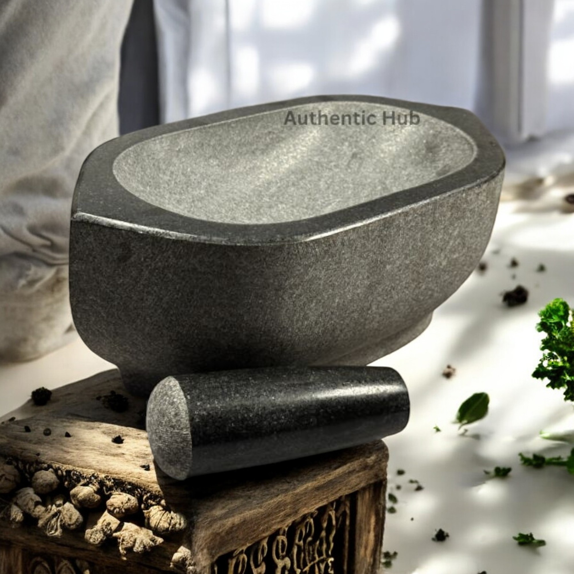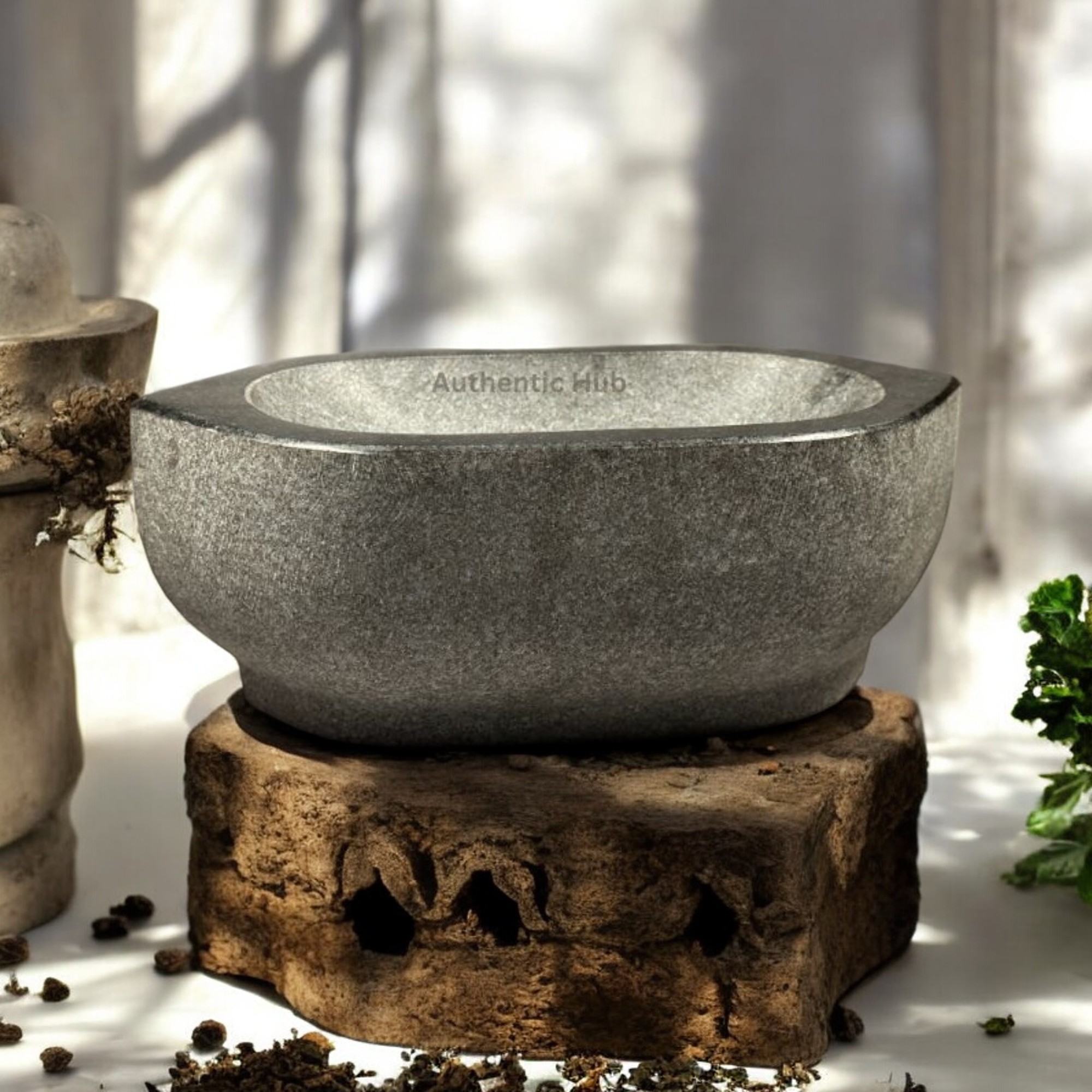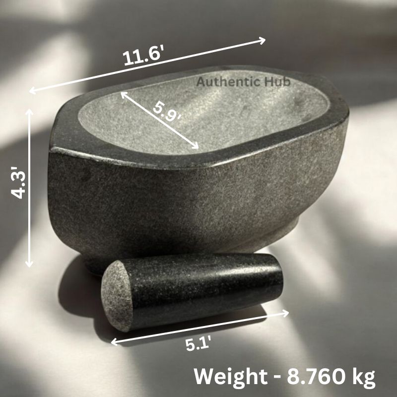 The true essence of traditional cooking with Indi Authentic Hub’s handcrafted Big Heavy Stone Kalvam. Perfect for those who cherish the old-world charm, this sturdy mortar and pestle, or as some may call it, molcajete, is meticulously crafted from high-quality granite. Whether you need a khalbatta, granite kharal, or marble kharal, this versatile stone grinder caters to all your grinding needs. Its durable design makes it an essential tool for spice grinding, making it one of the best mortar and pestle sets you can buy online. A perfect gifting mortar and pestle, it also functions effectively as a manual grain mill grinder, pill crusher, and herb grinder. The traditional design reflects a blend of aesthetics and functionality, ideal for any kitchen. Order today from Indi Authentic Hub and enjoy worldwide shipping within 7 days.