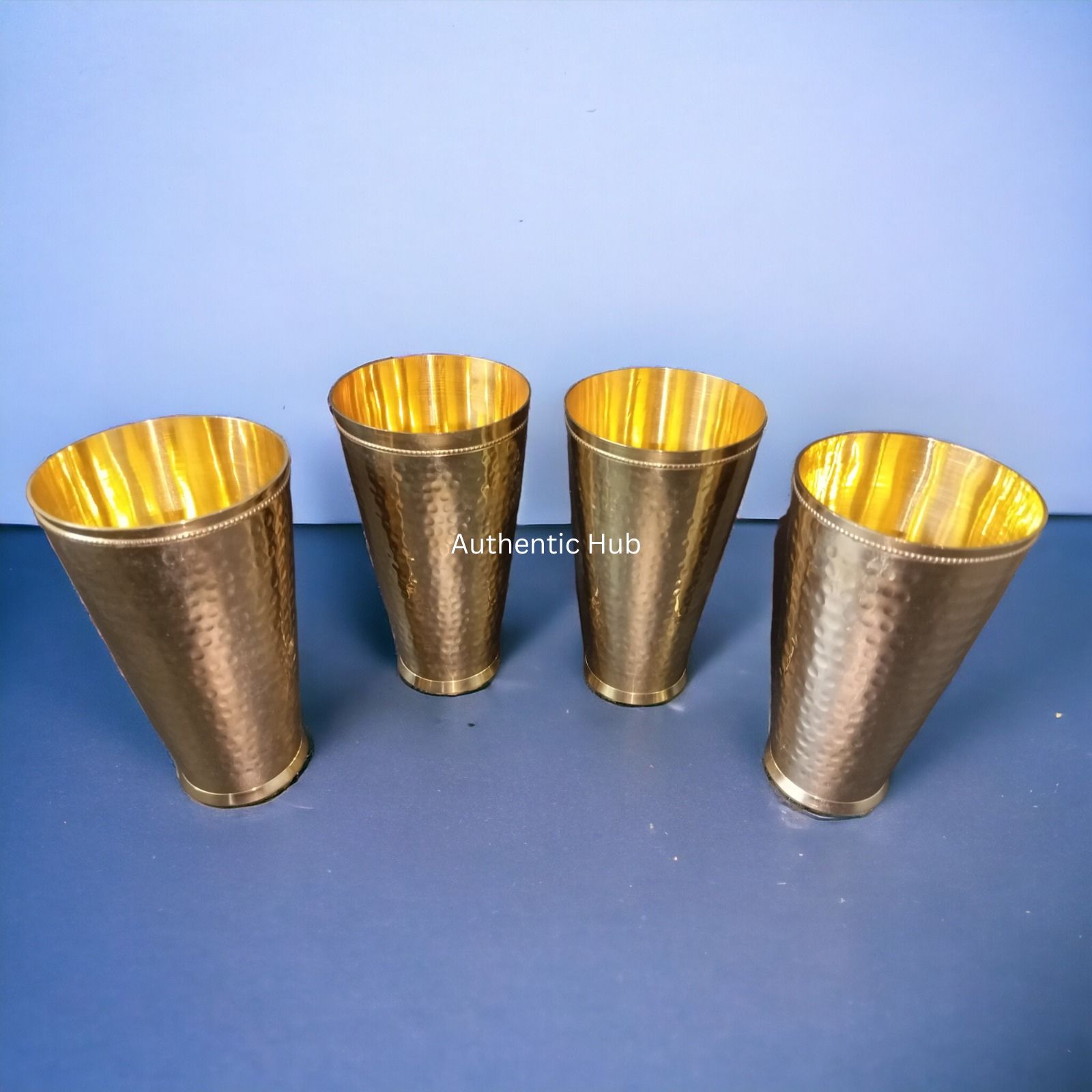 Buy Indian Handcrafted Brass Lassi Tumblers – Set of 4 | Vintage Handmade Brass Glasses, Perfect Drinkware & Gift – Flat 30% OFF at Indi Authentic Hub